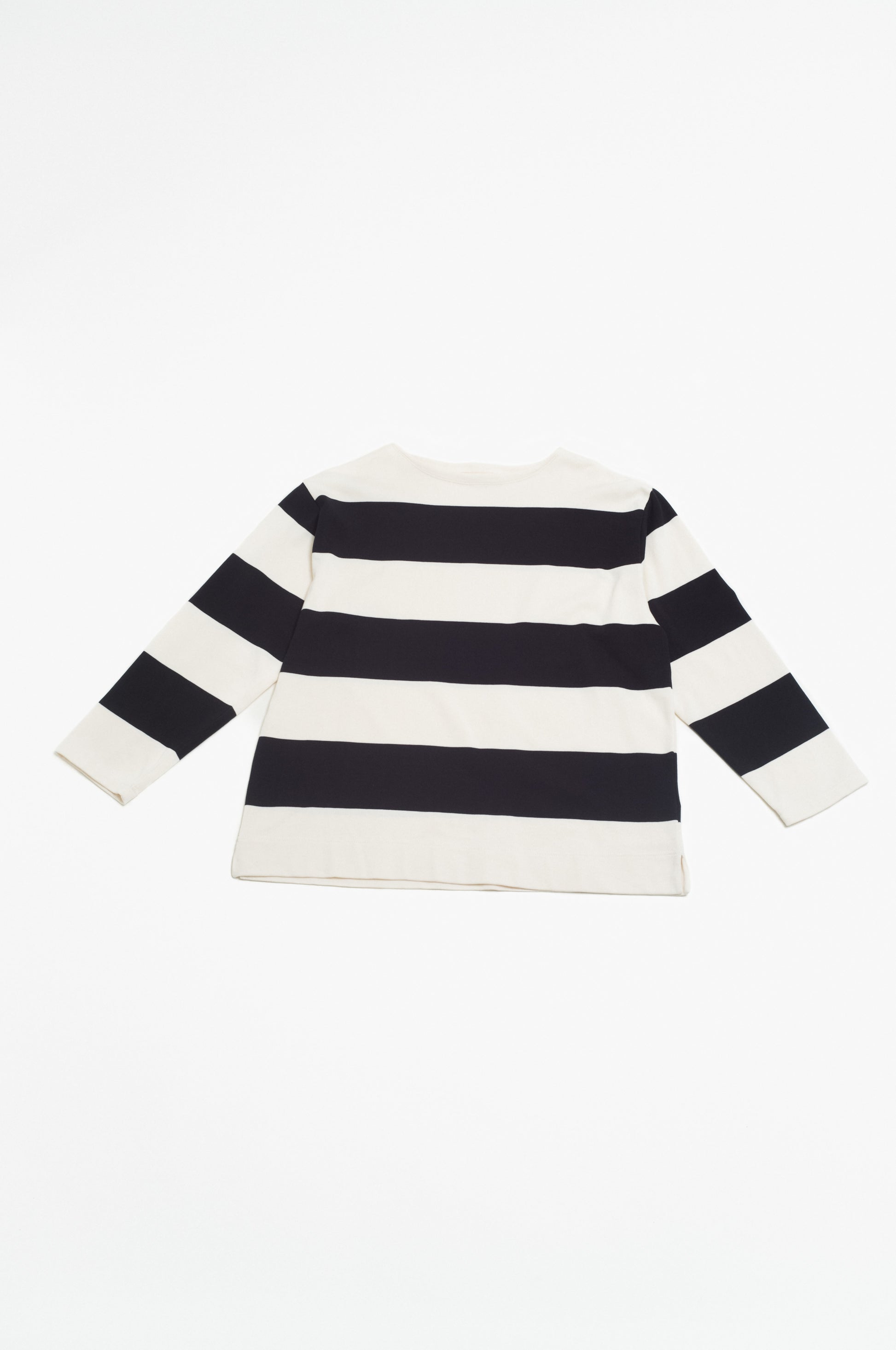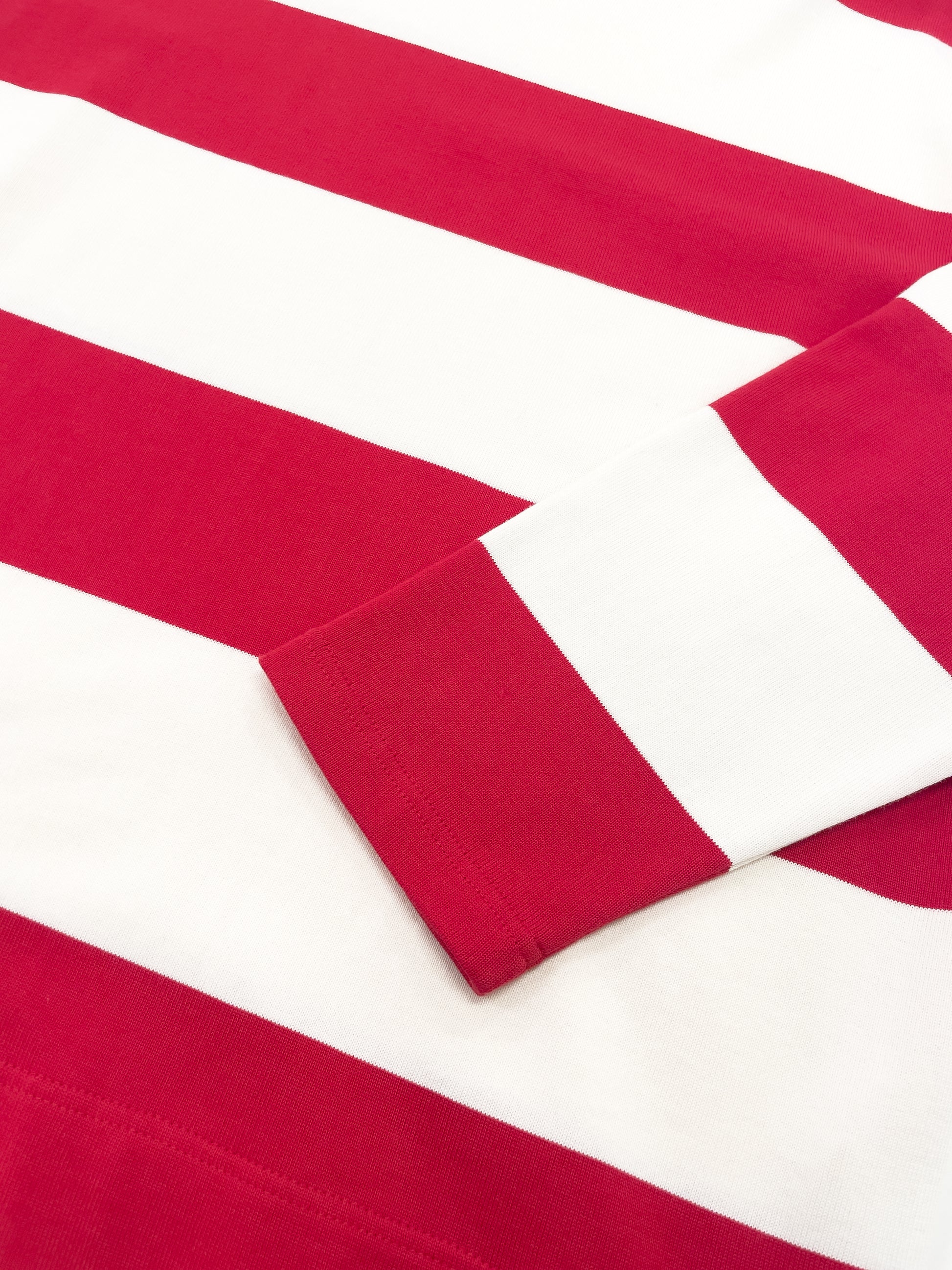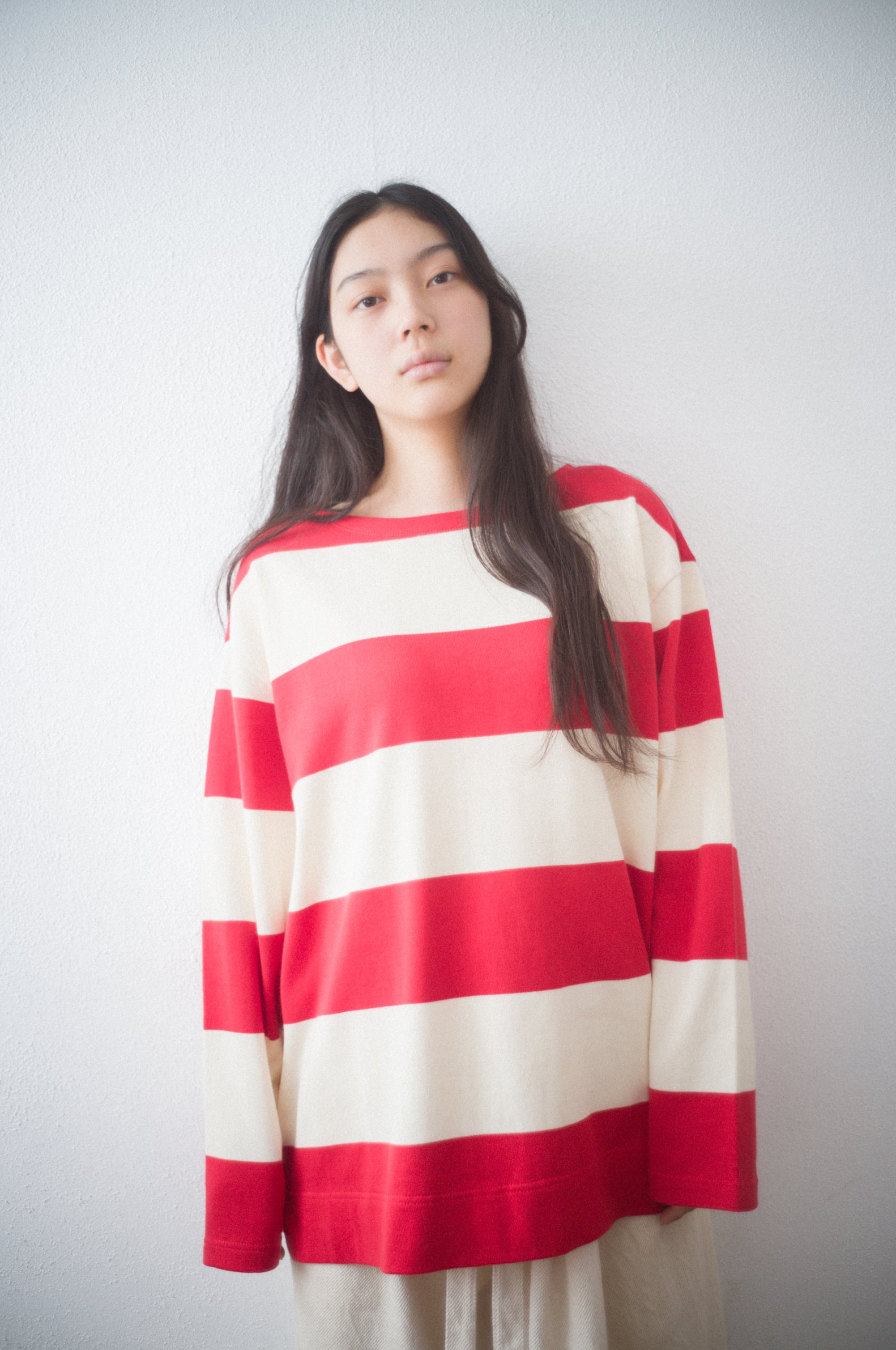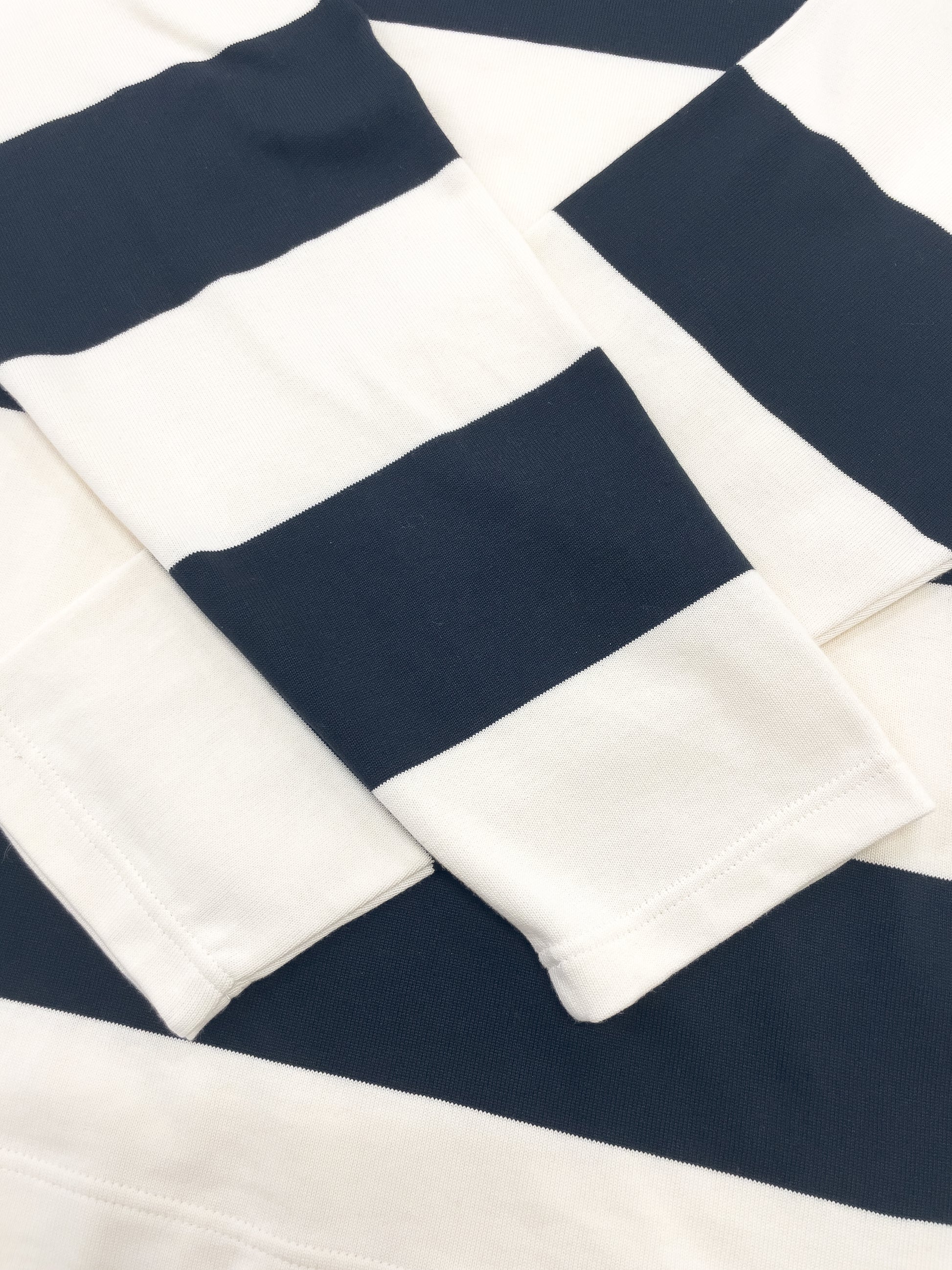 毛羽の少ない、上品な雰囲気の綿を使用したボーダーニット。