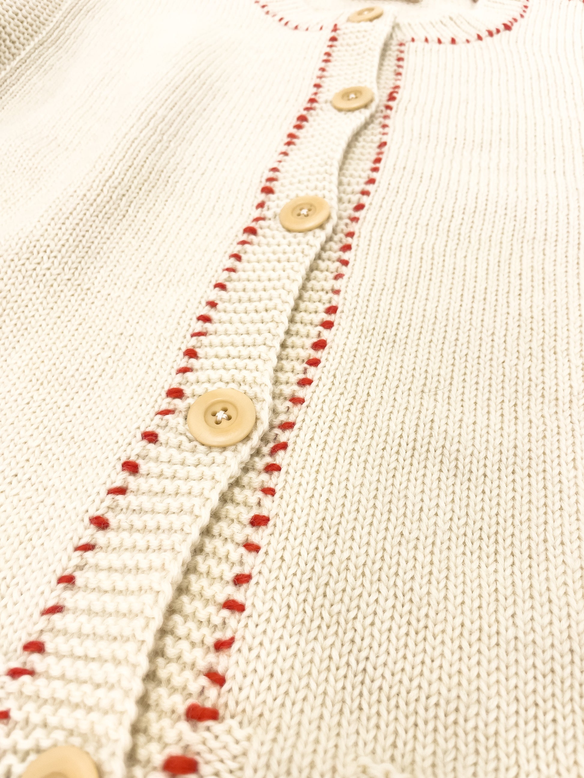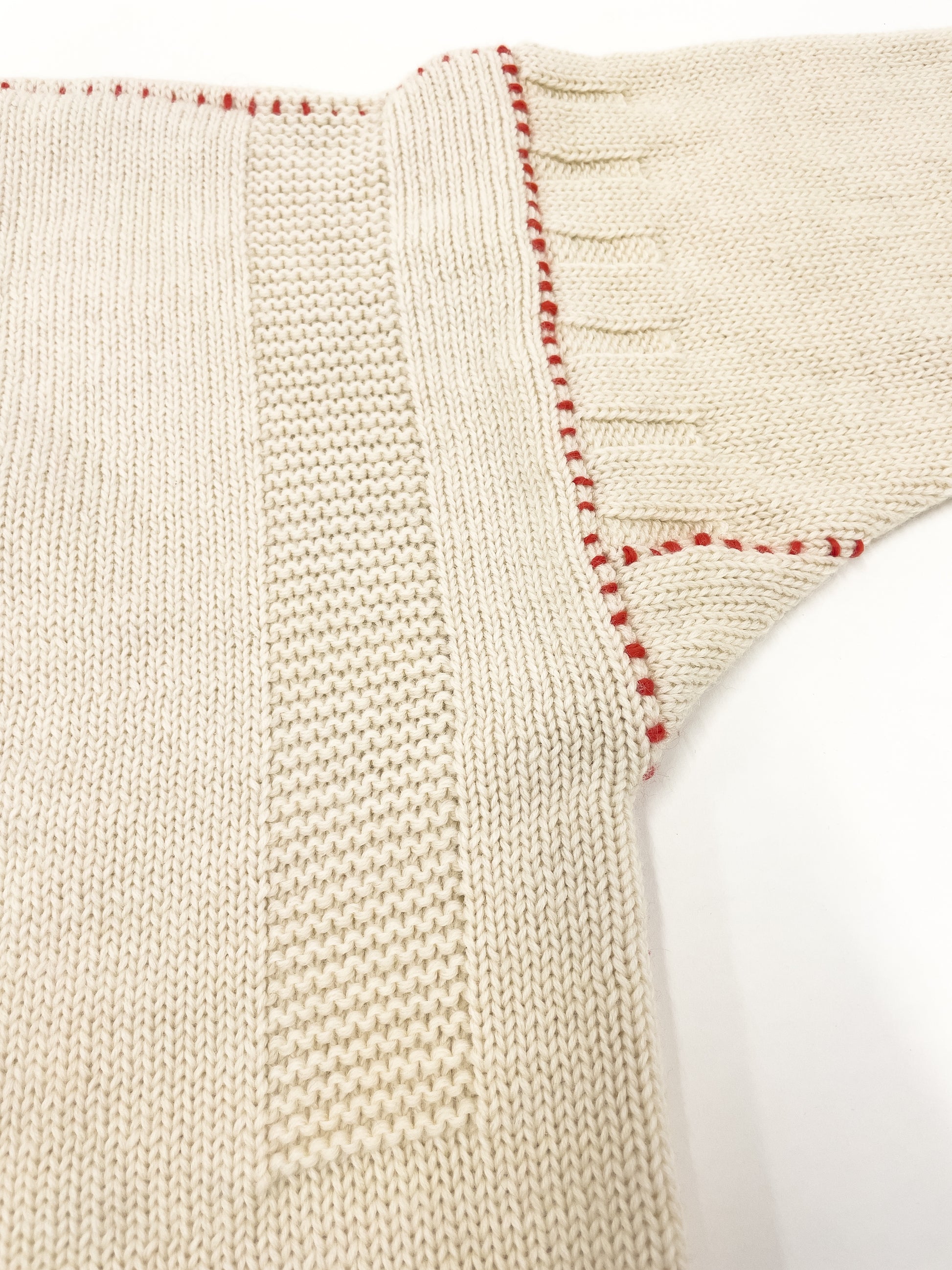 家庭機で丁寧に編まれたボディに、ハンドステッチがアクセントとして加えられています。