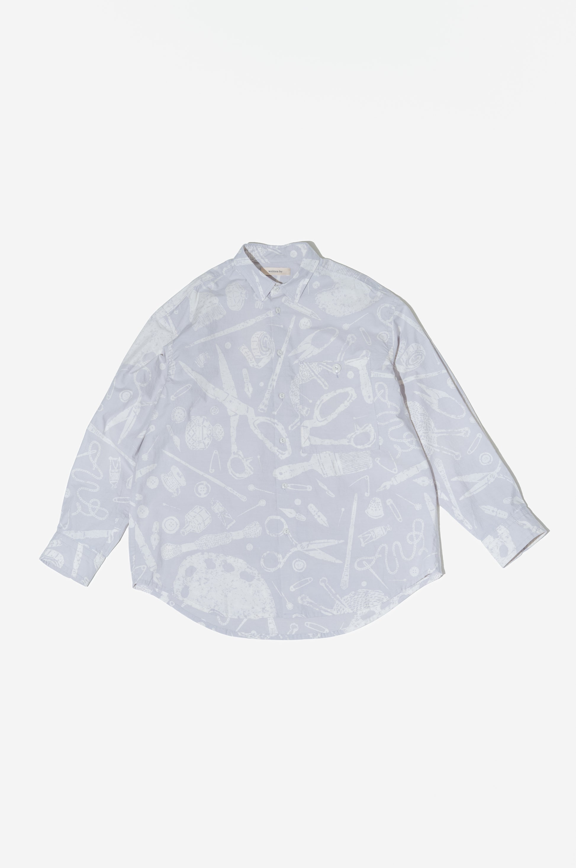 rivotorto piecesとの協業により制作されたオリジナル柄の道具モチーフのプリントシャツ。